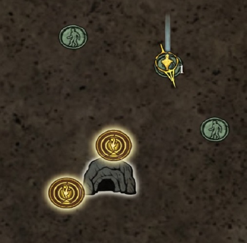 Each of those green markers shows where my character was underground when they encountered some hole in the ceiling. Incidentally, normally the map is filled in with detail but I’m keeping it opaque to make it easier to see where the character is.